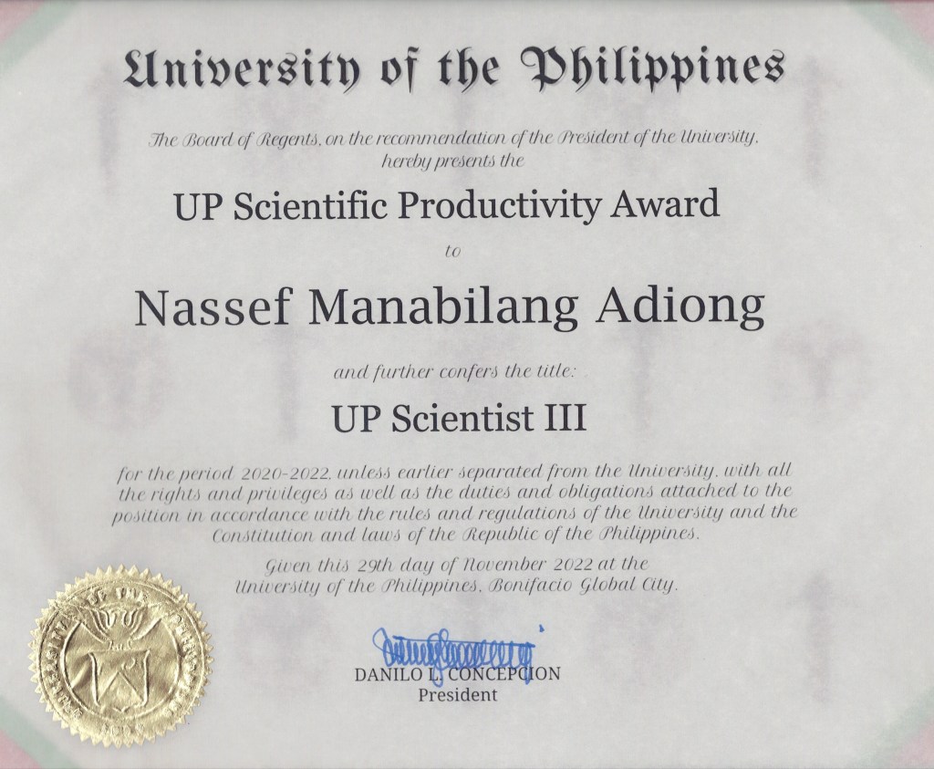 In late 2021, Nassef was commended with a resolution adopted by the Bangsamoro Transition Authority citing his honors and distinctions as exemplary for the entire Bangsamoro young populace. Prior to the approval of the resolution, he earned the highest rank of “UP Scientist III” and conferred the “Centennial Professorial Chair” by the University of the Philippines Diliman and the “Professorial Chair in Political Science and International Relations” by the Polytechnic University of the Philippines. Beyond academia, he was honored as one of the TOYM (The Outstanding Young Men & Women) awardees of the JCI Philippines and one of the Most Outstanding Alumni of the University of the East.