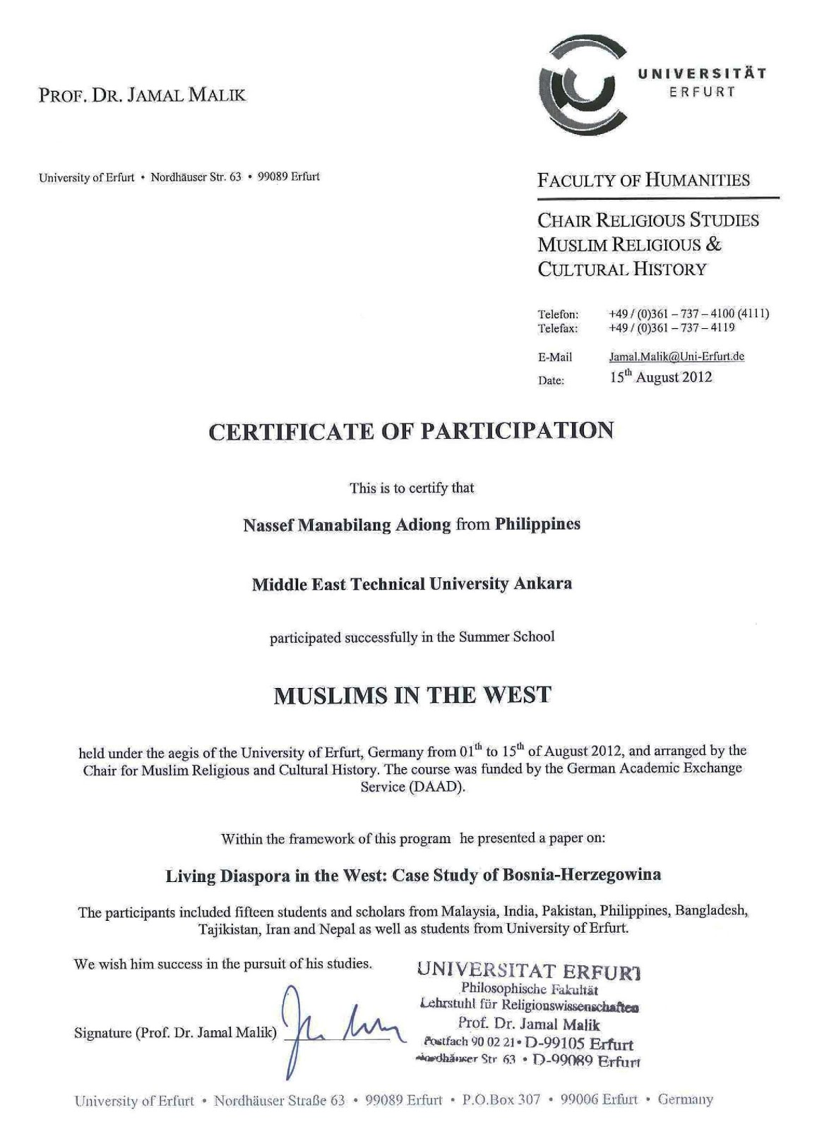 The summer school has always been a very successful vehicle not only in strengthening the dialogue, but also in increasing the international reputation of University of Erfurt. So far more than 100 students have participated in this summer school and many more have shown interest, to participate fruitfully in the ongoing mutual understanding of “Islam” and the “West”.
