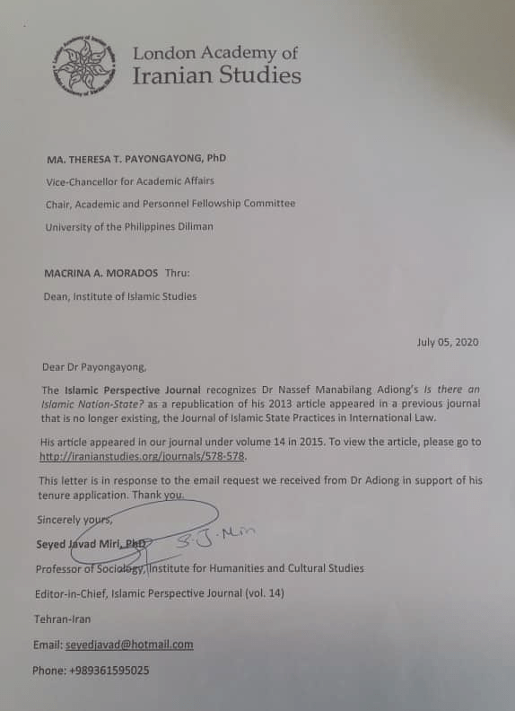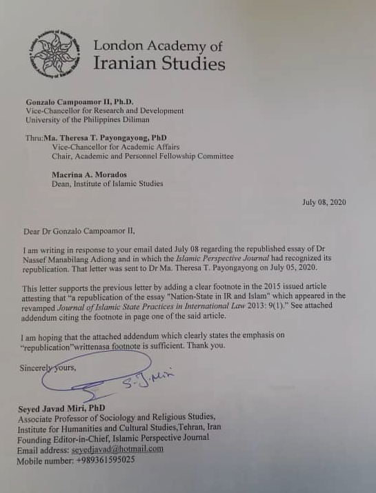 Adiong, N.M. (2013) “Nation-State in IR and Islam,” Journal of Islamic State Practices in International Law, Vol. 9, Issue 1, pp. 102-120 (republished as “Is there an Islamic Nation-State,” Islamic Perspective Journal, Vol. 14, 2015, pp. 1-18).