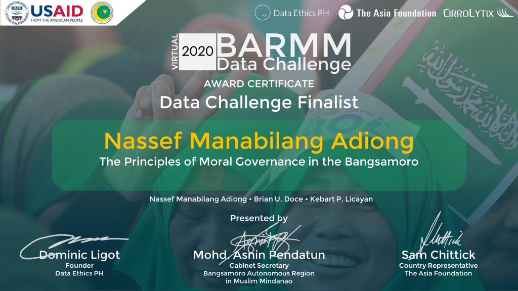 The leadership of the Bangsamoro is determined to lead and manage the Moro society based on ‘“moral governance’.” However, it is difficult to understand what moral governance means. By using an exploratory design to frame research as inquiry and gain insights on moral governance as BARMM’s agendum, the research navigated and conceptualized the meaning of moral governance based on a proposed framework that constitutes five immutable principles: Faith, Freedom, Moral Authority, Common Good, and Social Ethics. By constituting these interrelated principles that will map the framework towards practice, within the distinct historical and faith context of Muslim Philippines, a sustainable Bangsamoro leadership is envisaged as a tolerant society to various Muslim groups and non-Muslim communities—Christians and Indigenous Peoples in particular.