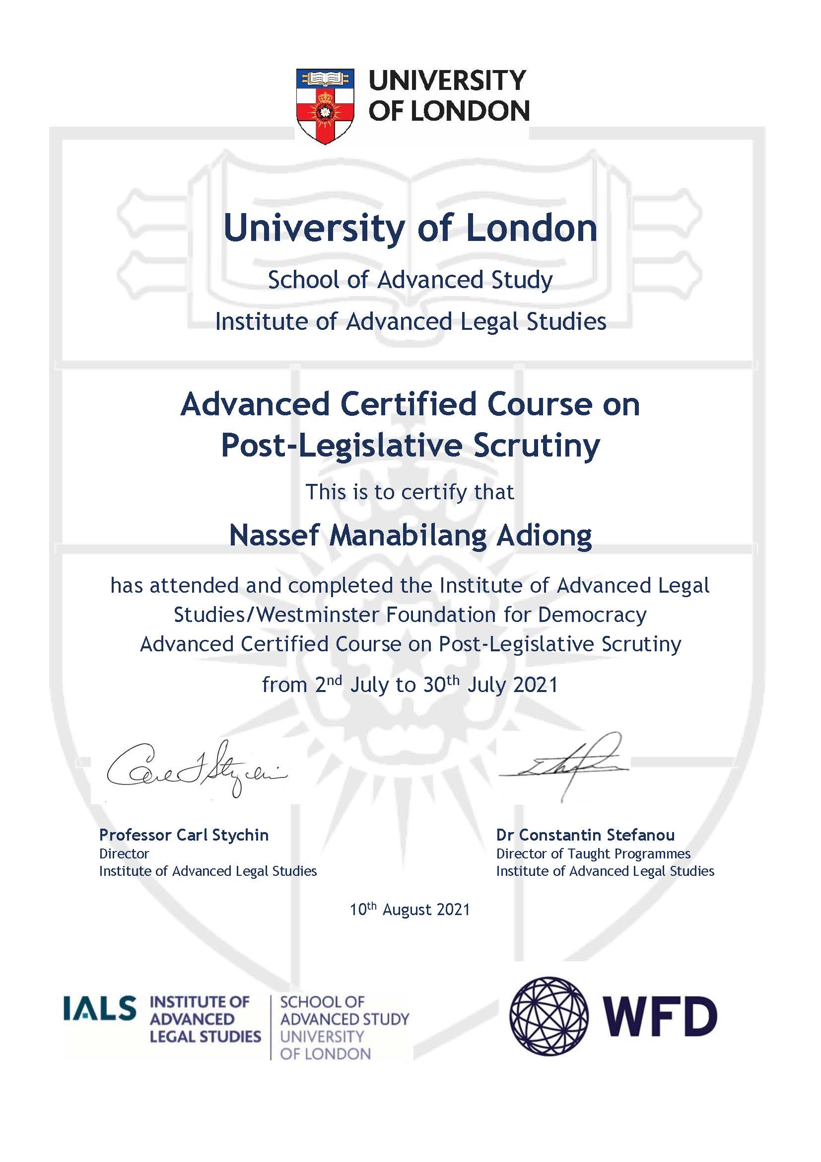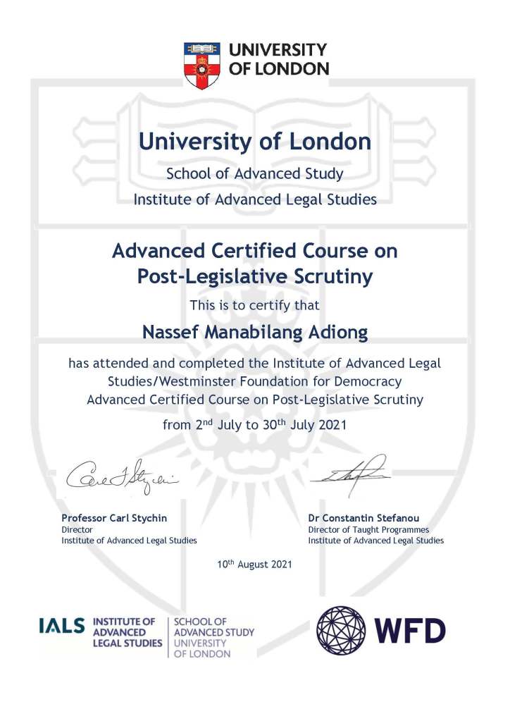 Advanced Certificate Course on Post-Legislative Scrutiny