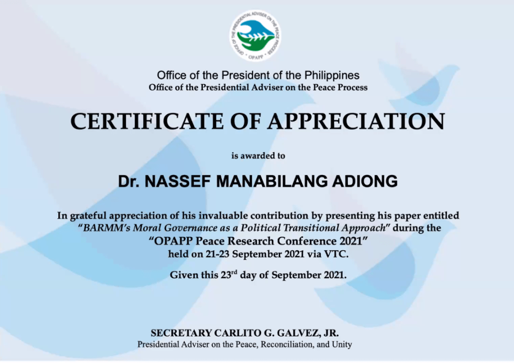 Nassef is the founder of Co-IRIS (International Relations and Islamic Studies Research Cohort), PHISO (Philippine International Studies Organization), DSRN (Decolonial Studies Research Network), and BRLN (Bangsamoro Research and Legal Network). He works on interdisciplinary research between Islam and International Relations and explores the Bangsamoro society as he heads the Policy Research and Legal Services (PRLS) of the Bangsamoro Parliament. Visit https://nassef.info/ for more details. View all posts by Nassef Manabilang Adiong