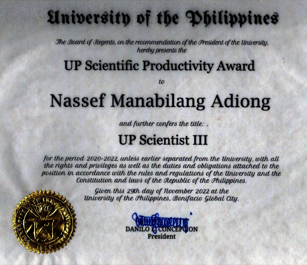 The UP Scientific Productivity System (SPS) was approved by the Board of Regents in its 1199th meeting in August 2005. The SPS aims to: (1) support the development of science and technology and (2) encourage and reward scientific productivity. Deserving scientists shall be conferred the title “UP Scientist.”
