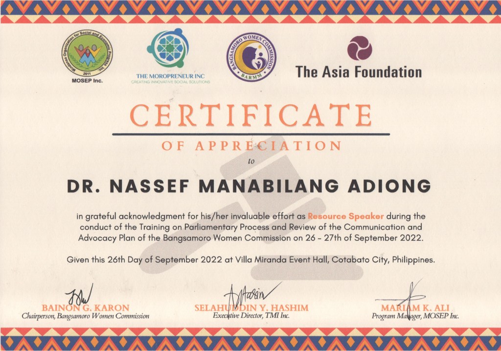 Nassef is the founder of Co-IRIS (International Relations and Islamic Studies Research Cohort), PHISO (Philippine International Studies Organization), DSRN (Decolonial Studies Research Network), and BRLN (Bangsamoro Research and Legal Network). He works on interdisciplinary research between Islam and International Relations and explores the Bangsamoro society as he heads the Policy Research and Legal Services (PRLS) of the Bangsamoro Parliament. Visit https://nassef.info/ for more details. View all posts by Nassef Manabilang Adiong