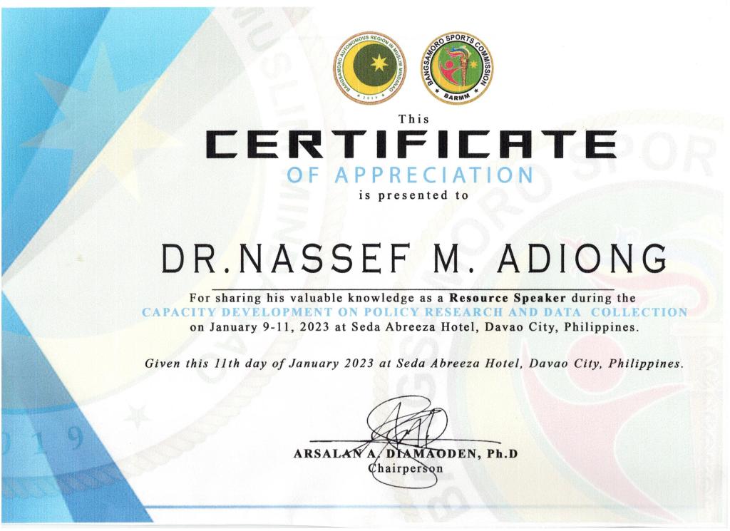 Capacity Development on Policy Research and Data Collection of the Bangsamoro Sports Commission