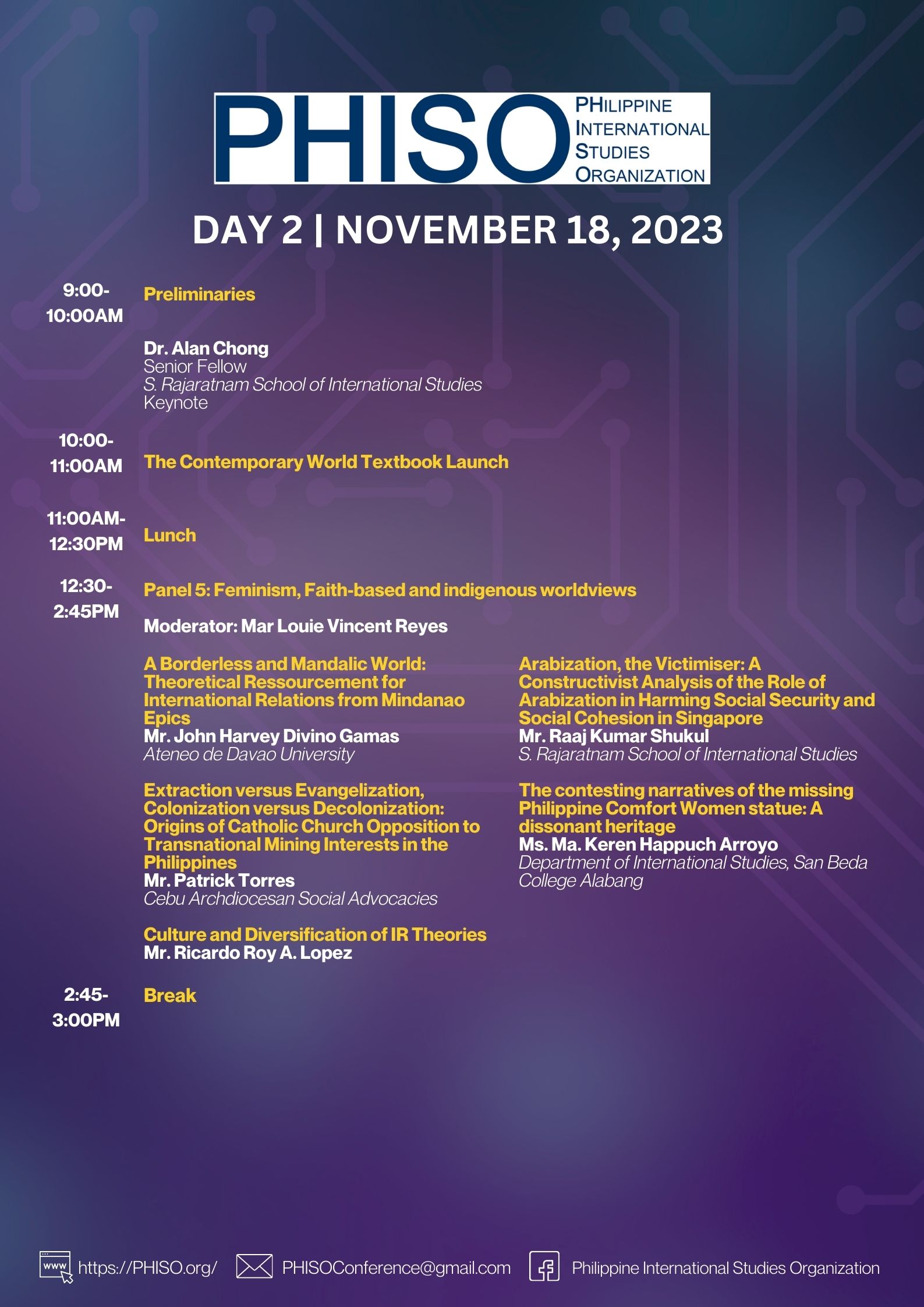 Nassef is the founder of PHISO (Philippine International Studies Organization), BRLN (Bangsamoro Research and Legal Network), DSRN (Decolonial Studies Research Network), and Co-IRIS (International Relations and Islamic Studies Research Cohort). He researches policy issues affecting the Bangsamoro society and explores decolonial knowledge sources of the global south as well as interdisciplinary study between Islam and International Relations.