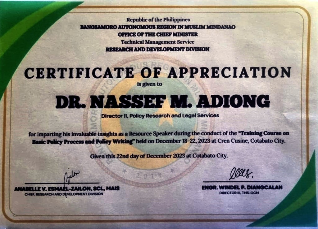 Nassef is the founder of Co-IRIS (International Relations and Islamic Studies Research Cohort), PHISO (Philippine International Studies Organization), DSRN (Decolonial Studies Research Network), and BRLN (Bangsamoro Research and Legal Network). He works on interdisciplinary research between Islam and International Relations and explores the Bangsamoro society as he heads the Policy Research and Legal Services (PRLS) of the Bangsamoro Parliament. Visit https://nassef.info/ for more details. View all posts by Nassef Manabilang Adiong