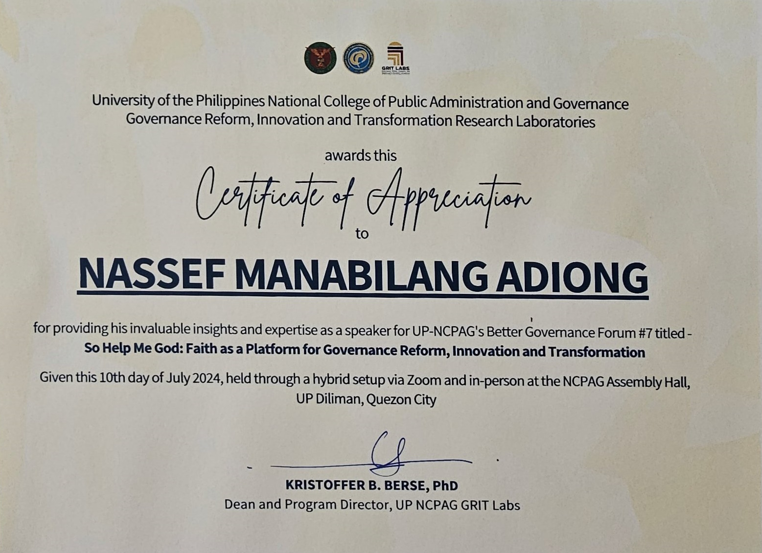 Nassef is the founder of Co-IRIS (International Relations and Islamic Studies Research Cohort), PHISO (Philippine International Studies Organization), DSRN (Decolonial Studies Research Network), and BRLN (Bangsamoro Research and Legal Network). He works on interdisciplinary research between Islam and International Relations and explores the Bangsamoro society as he heads the Policy Research and Legal Services (PRLS) of the Bangsamoro Parliament. Visit https://nassef.info/ for more details. View all posts by Nassef Manabilang Adiong