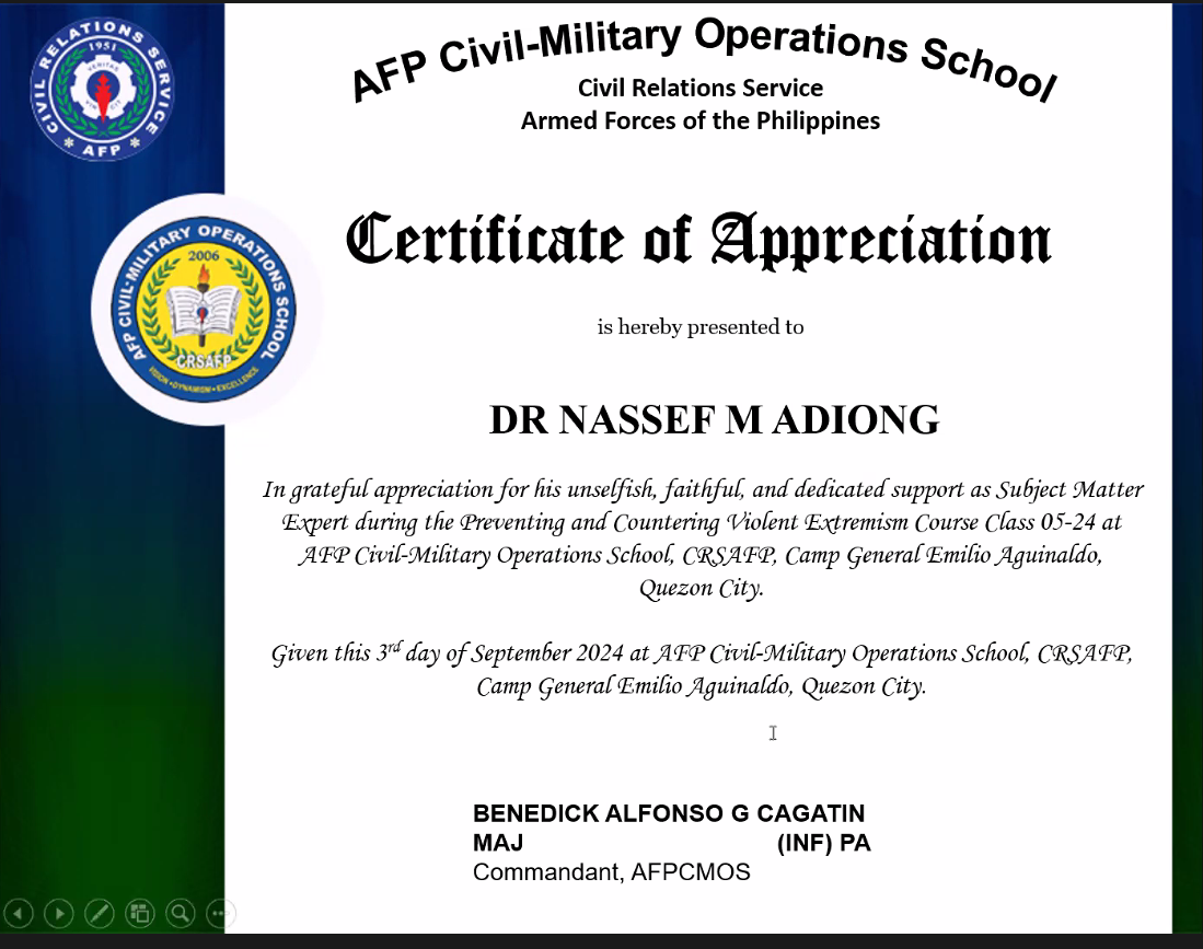 Nassef is the founder of Co-IRIS (International Relations and Islamic Studies Research Cohort), PHISO (Philippine International Studies Organization), DSRN (Decolonial Studies Research Network), and BRLN (Bangsamoro Research and Legal Network). He works on interdisciplinary research between Islam and International Relations and explores the Bangsamoro society as he heads the Policy Research and Legal Services (PRLS) of the Bangsamoro Parliament. Visit https://nassef.info/ for more details. View all posts by Nassef Manabilang Adiong