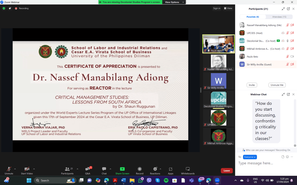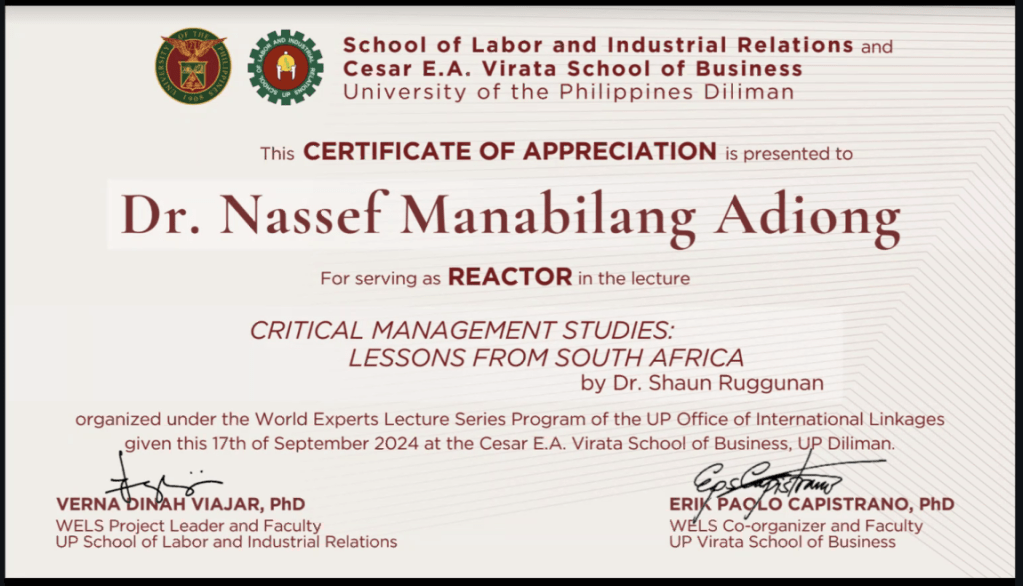 Nassef is the founder of Co-IRIS (International Relations and Islamic Studies Research Cohort), PHISO (Philippine International Studies Organization), DSRN (Decolonial Studies Research Network), and BRLN (Bangsamoro Research and Legal Network). He works on interdisciplinary research between Islam and International Relations and explores the Bangsamoro society as he heads the Policy Research and Legal Services (PRLS) of the Bangsamoro Parliament. Visit https://nassef.info/ for more details. View all posts by Nassef Manabilang Adiong