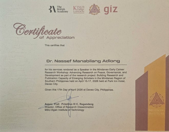 Nassef is the founder of PHISO (Philippine International Studies Organization), BRLN (Bangsamoro Research and Legal Network), DSRN (Decolonial Studies Research Network), and Co-IRIS (International Relations and Islamic Studies Research Cohort). He researches policy issues affecting the Bangsamoro society and explores decolonial knowledge sources of the global south as well as interdisciplinary study between Islam and International Relations.