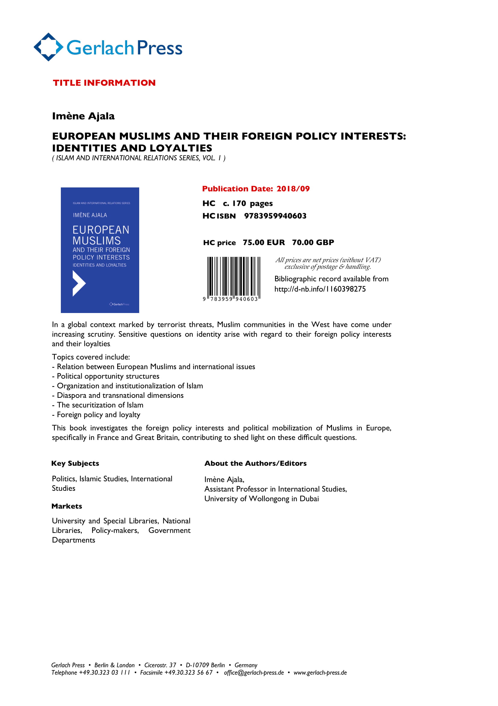 European Muslims and their Foreign Policy Interests: Identities and Loyalties