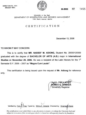 The midyear college graduates — students of UE’s Manila and Caloocan campuses who completed their studies last summer or in the first semester of school-year 2006-2007 — are led by Nassef M. Adiong who will graduate with the degree of Bachelor of Arts, Major in International Studies, magna cum laude.