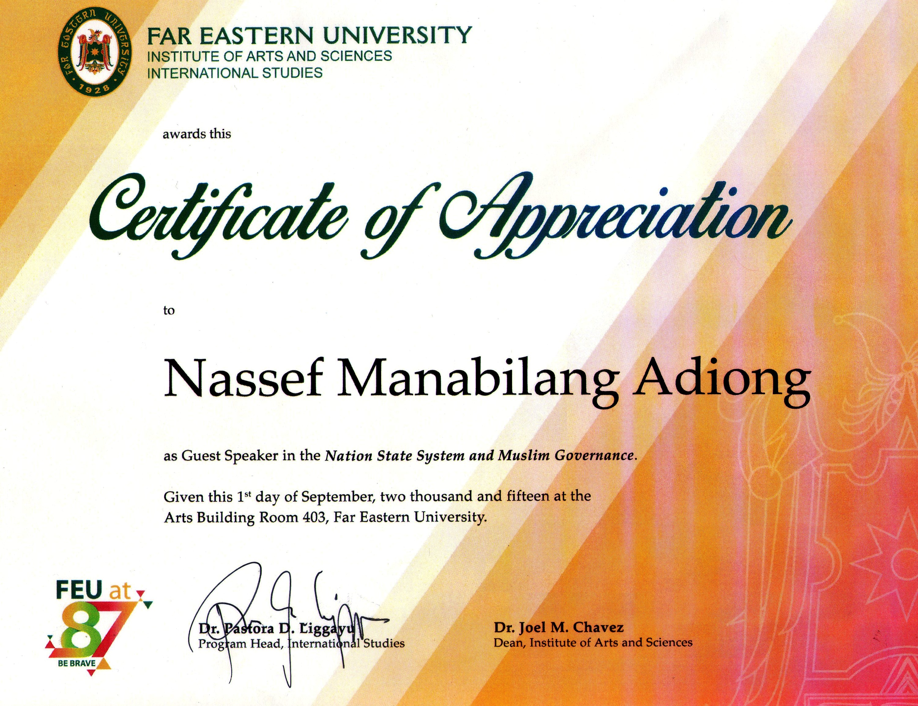 Nassef is the founder of PHISO (Philippine International Studies Organization), BRLN (Bangsamoro Research and Legal Network), DSRN (Decolonial Studies Research Network), and Co-IRIS (International Relations and Islamic Studies Research Cohort). He researches policy issues affecting the Bangsamoro society and explores decolonial knowledge sources of the global south as well as interdisciplinary study between Islam and International Relations.