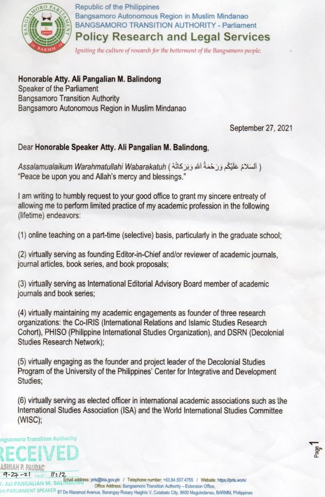 Nassef is the founder of PHISO (Philippine International Studies Organization), BRLN (Bangsamoro Research and Legal Network), DSRN (Decolonial Studies Research Network), and Co-IRIS (International Relations and Islamic Studies Research Cohort). He researches policy issues affecting the Bangsamoro society and explores decolonial knowledge sources of the global south as well as interdisciplinary study between Islam and International Relations.